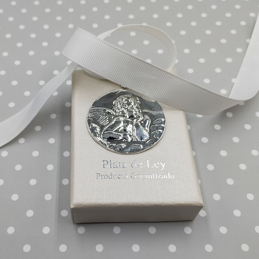 Colgante cinta elástica medalla Padre Nuestro de plata